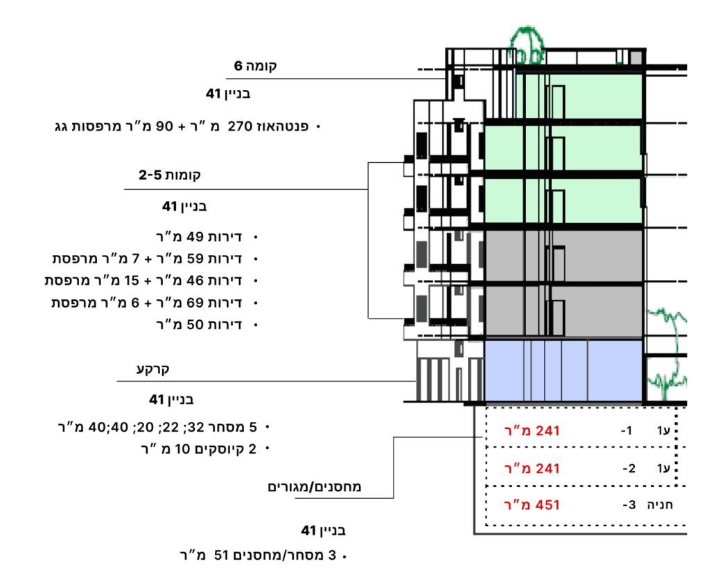 | בניה מעל הקרקע | 222,000 מ”ר |