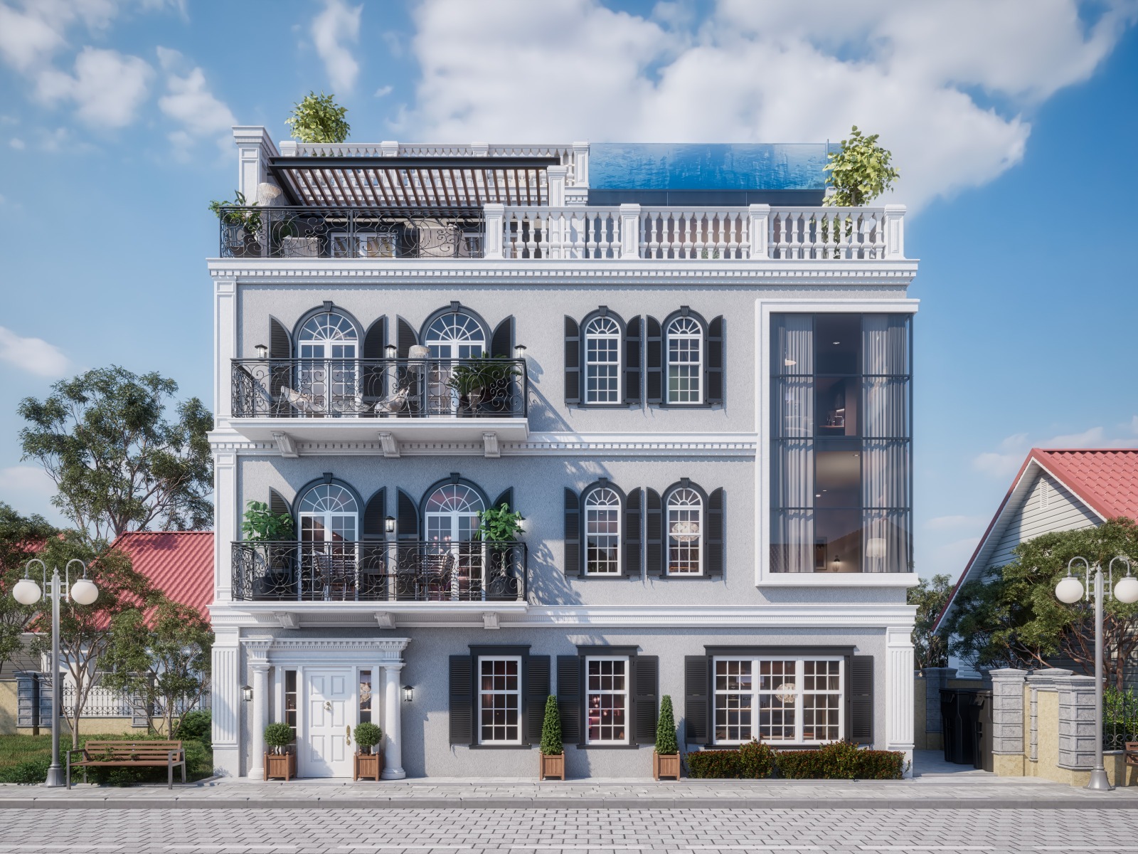 העיצוב נעשה מתוך כבוד ורגישות לאופי הייחודי של השכונה. הבית העירוני מורכב מ-3 קומות עיקריות, פנטהאוז + גג, ו-2 קומות תת קרקעיות. כל סנטימטר מרובע נשקל מחדש בדרך ליצור בית מרווח, אוורירי ונעים, מלא באור טבעי ועם זאת מבטיח פרטיות